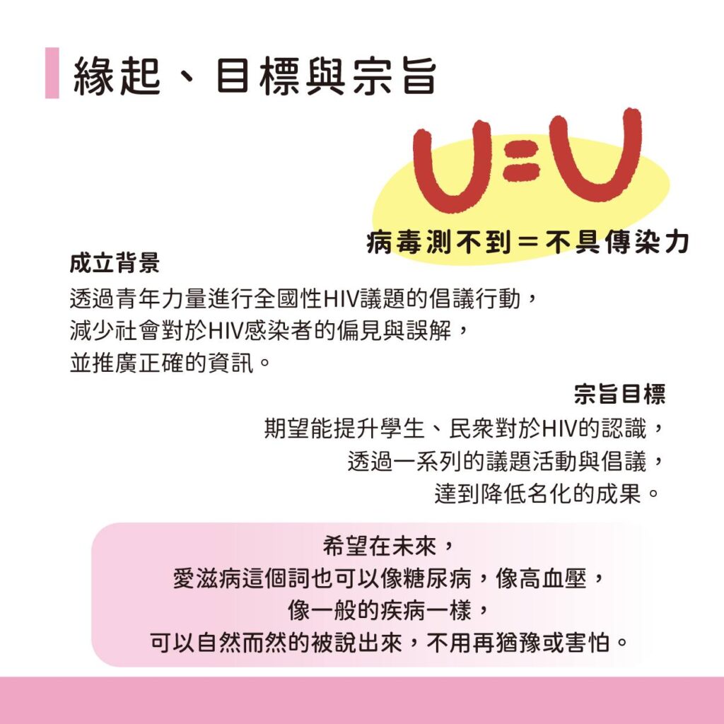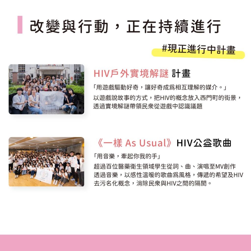 HIV專案小組為臺灣公衛學生聯合會的任務部門,從2023年起我們開始推動HIV去污名化議題,持續以青年力量進行HIV倡議行動,秉持以青年影響青年的核心概念,透過創新方式串聯產官學界打造一個個特色倡議計畫,期望能消除全民的偏見與誤解。