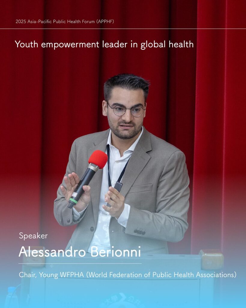 Alessandro Berionni 以青年與公共衛生視角分享,老化不只是醫療問題,更是社會設計與價值選擇。他呼籲以創新科技與社區共創重新定義老化,並肯定台灣在跨專業合作與高齡健康推動上的啟發價值。