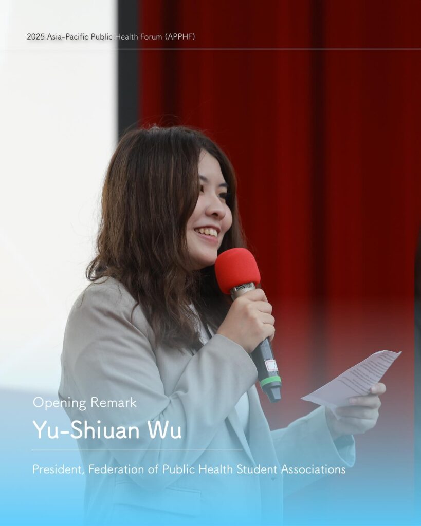今年(2025)8月26日至28日,亞太公衛論壇於台大公衛學院盛大舉行,以「The Aging Era and Global Health」為主題,聚焦高齡化時代下的健康挑戰與創新行動。活動吸引來自4國超過80位青年,共同以多元觀點探討如何在全球化浪潮中實現健康老化。論壇邀請到衛福部國健署魏璽倫副署長、臺灣公衛學生聯合會理事長吳俞萱、世界公共衛生學會聯盟青年部(Young WFPHA)秘書Federica Castellana 致開幕詞,鼓勵青年運用所長發揮影響力。